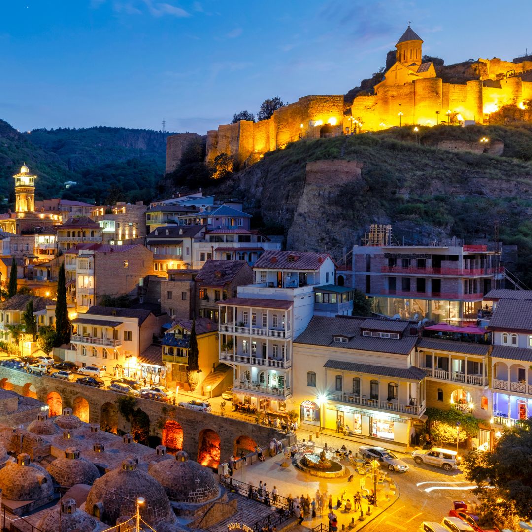 Explore Tbilisi’s rich heritage — from ancient fortresses and sulfur baths to the modern Bridge of Peace.